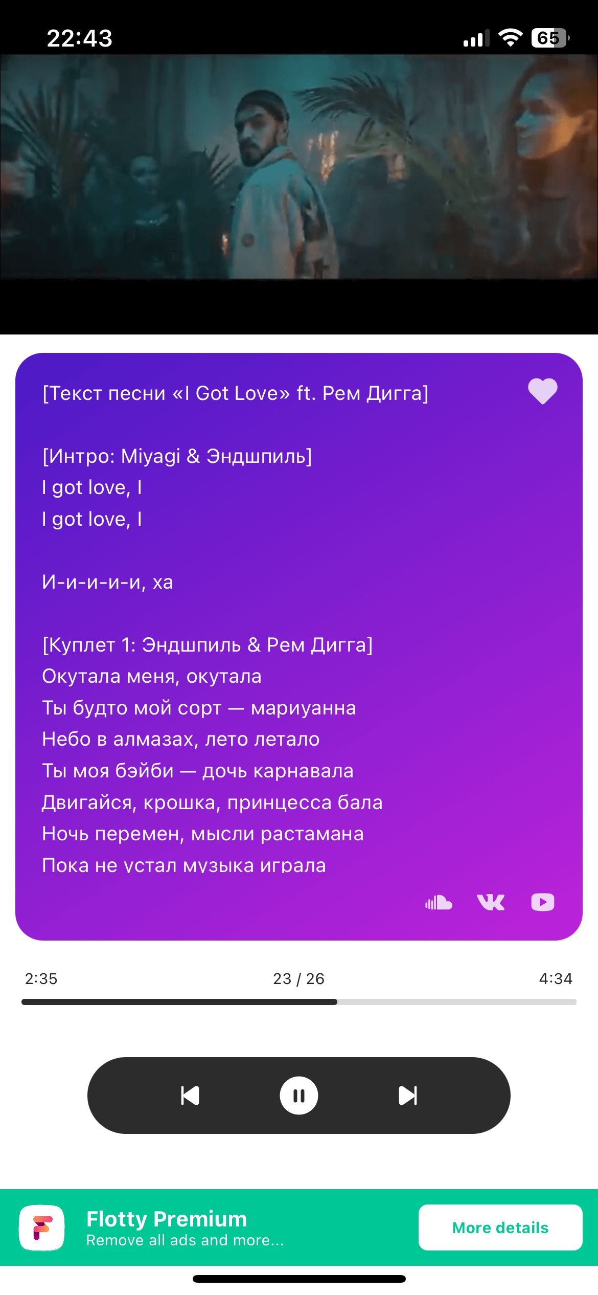 where the lyrics of the song and a public clip from YouTube are always at hand. We believe that it is not only useful